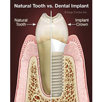 Diferența dintre un dinte natural și un dinte pe suport implantar: Dinții naturali și implanturile dentare pot arăta, se pot simți la fel și au aceleași funcții dar sunt foarte diferiți. Cele mai importante diferențe se observă la felul cum sunt atașate în osul alveolar, răspunsul implantului la bolile dentare, întreținerea și reparațiile lor.