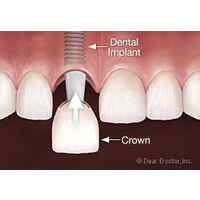 În situația unui singur dinte înlocuit Imediat dupa implant se poate înlocui dintele cu o coroană dentară sau după perioada de vindecare. Medicul va comanda o coroană dentară care va înlocui dintele pierdut fiind atașată prin cimentarea sau prin înșurubarea sa pe implantul dentar.